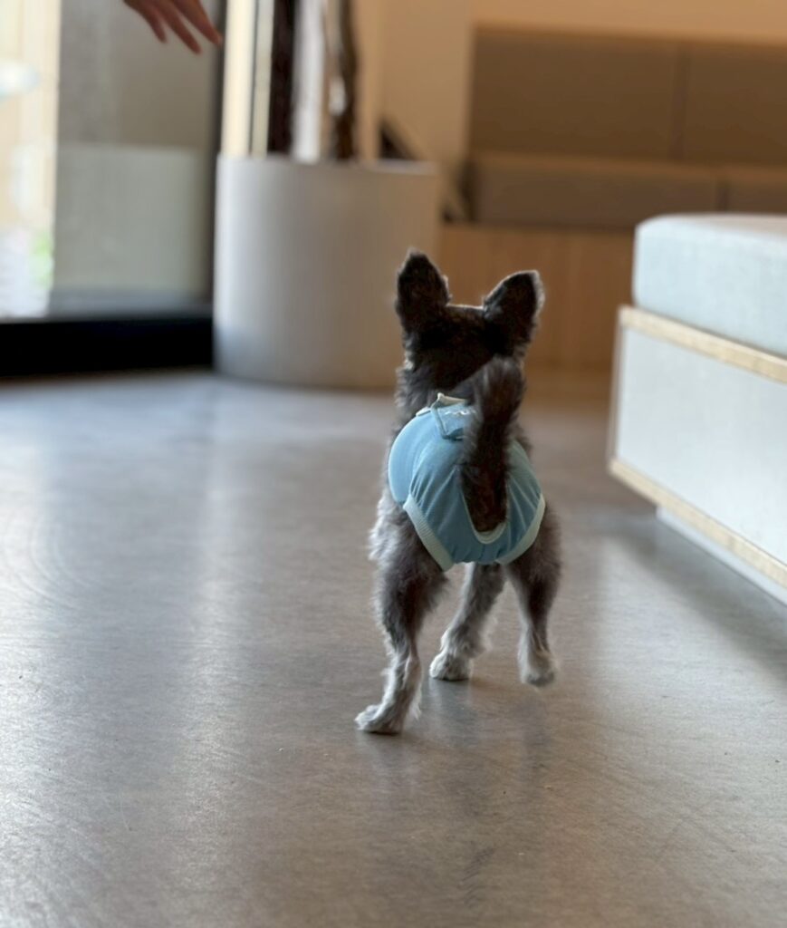 尿道カテーテルを2日間設置する必要があるため、お泊まり入院になります。2日後元気に歩いて帰るうしろ姿が可愛いです。
