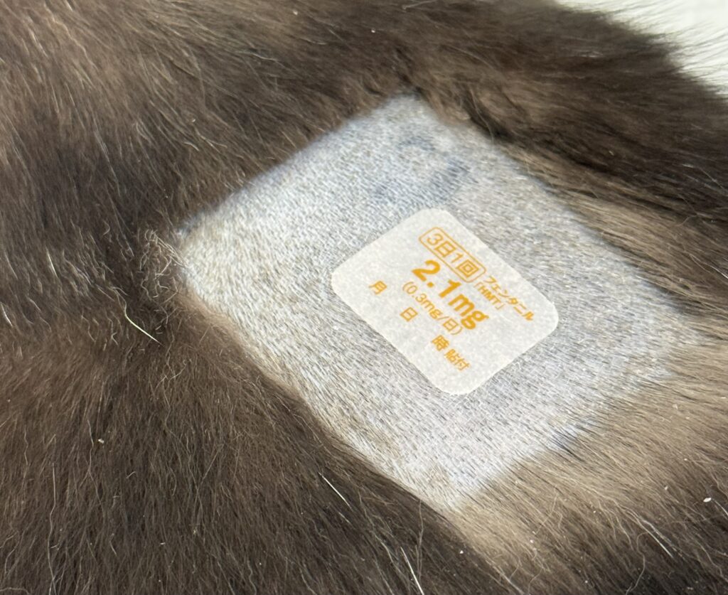 術後は患部がズキズキ痛むので、麻薬の痛み止めを皮膚に貼り付けます。投薬なしで効果が数日間持続します。