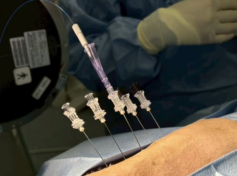 椎間板物質に22Gという細い針を刺入します。当センターが保有する高性能Cアームにより安全にターゲットへ刺入が可能です。